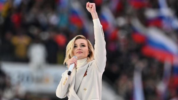 Певица Полина Гагарина выступает на митинге-концерте в "Лужниках", посвященном воссоединению Крыма с Россией