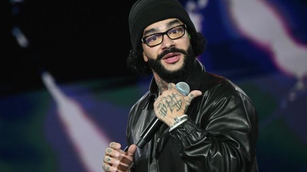 Певец Akmal' (Акмаль Ходжаниязов), победивший в номинации "Лучшее лирическое видео" с клипом "Раневская", на церемонии вручения ХХ национальной телевизионной премии в области популярной музыки "МУЗ-ТВ 2025. Легенда" в "Live Арене" в Москве