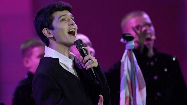 Певец Akmal' (Акмаль Ходжаниязов) выступает на гала-концерте Х Всероссийского фестиваля-конкурса "Имена России", приуроченном к 95-летнему юбилею композитора Александры Пахмутовой, в Государственном Кремлевском дворце в Москве